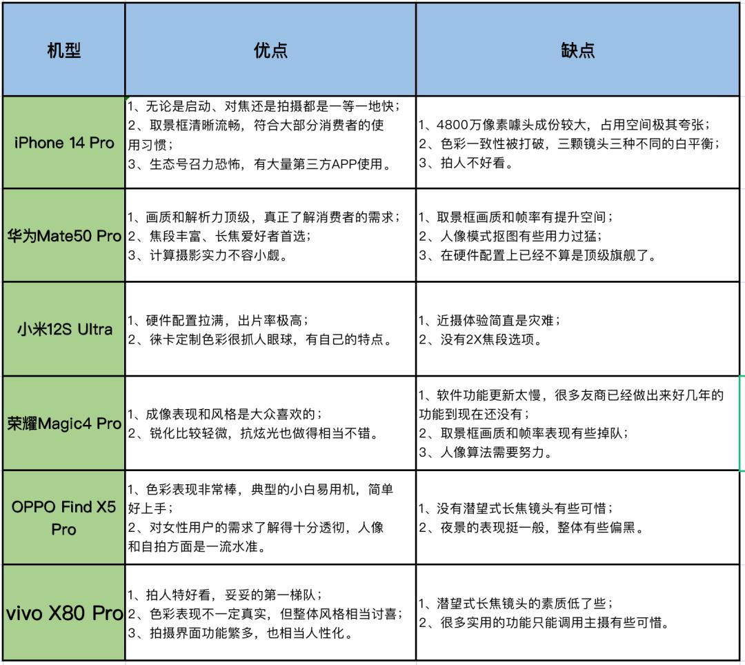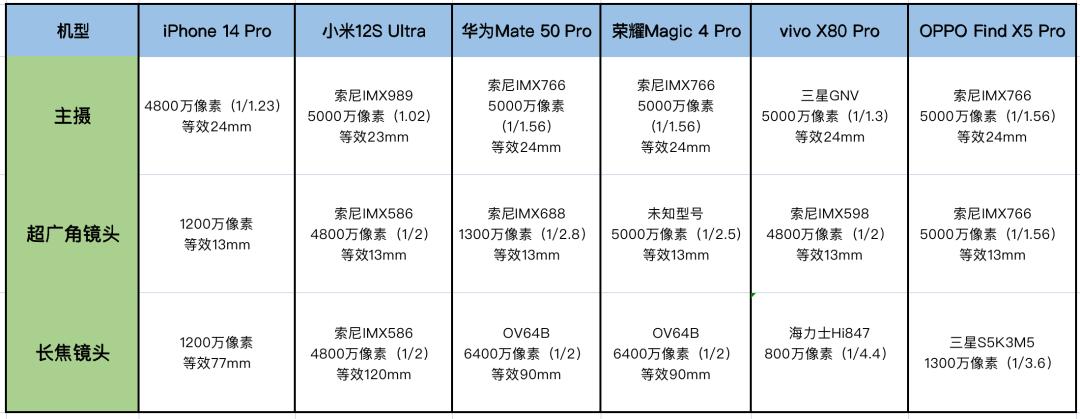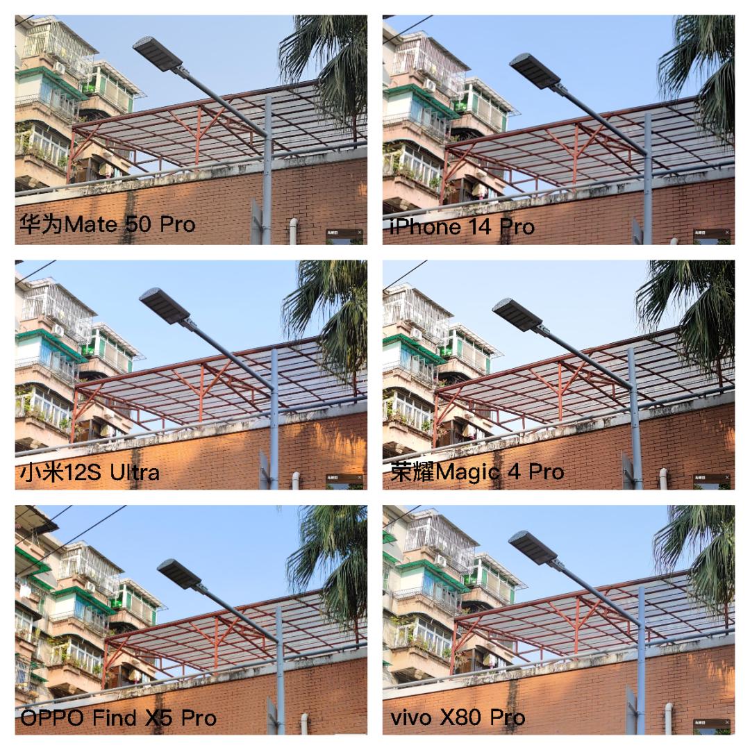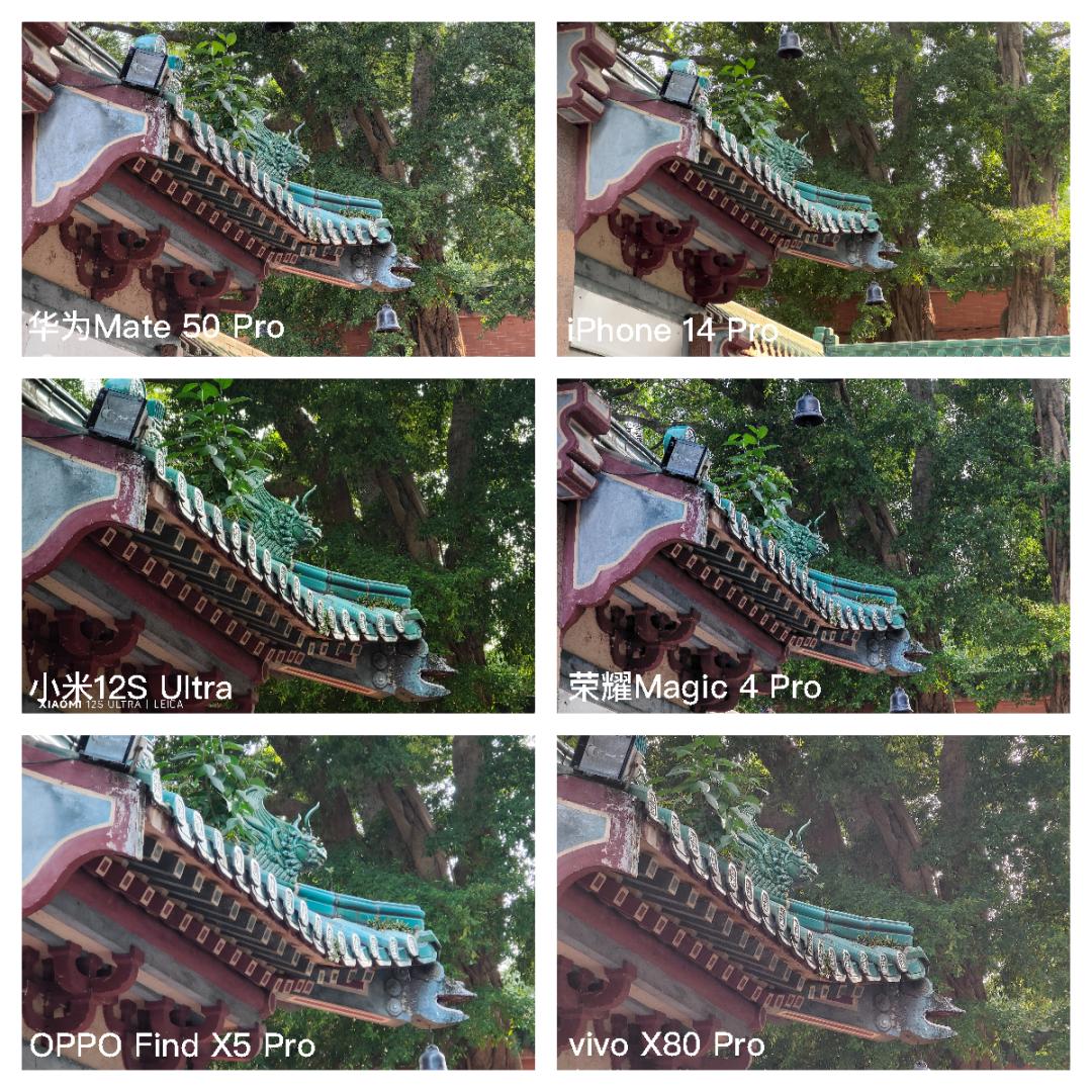 借此机会,雷科技开启了一年一度的旗舰手机影像横评,参选机型分别为iPhone 14 Pro、小米12S Ultra、华为Mate50 Pro、荣耀Magic 4 Pro、vivo X80 Pro以及OPPO Find X5 Pro。