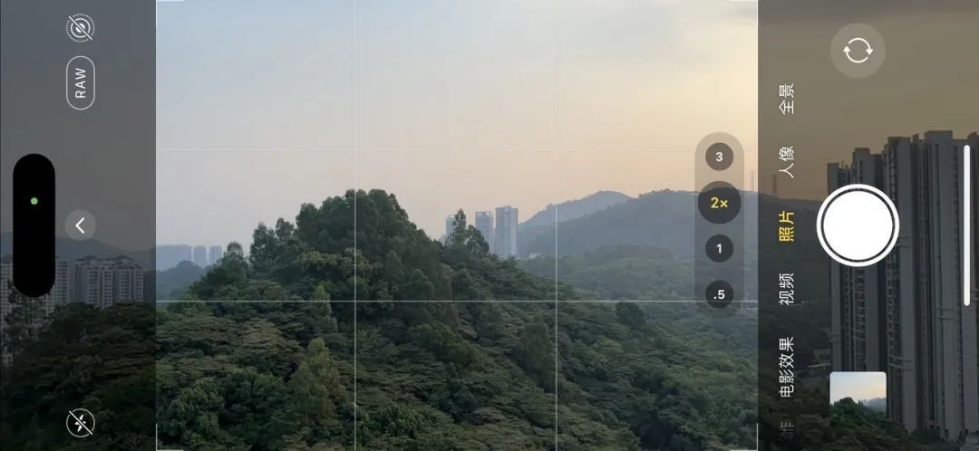 vivo X80 Pro提供0.5X(13mm)、1X(24mm)、2X(50mm)和5X(120mm)四个焦段,尤其是2X变焦选项的出现让用户能够快速切换至“人像拍摄”状态,在交互上比较友好。