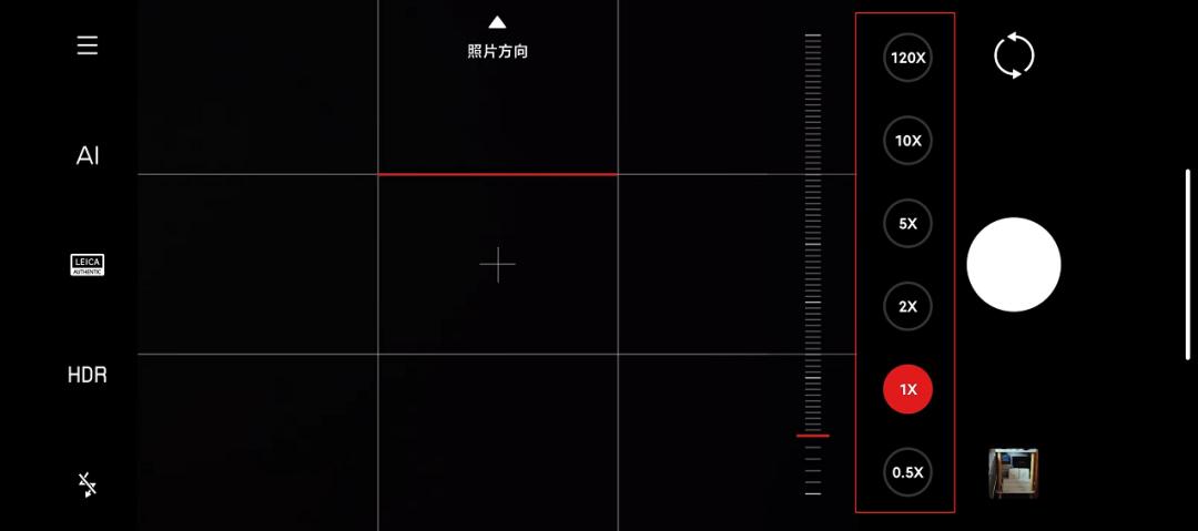小米12S Ultra作为六款手机中影像硬件配置最高的手机,只提供了0.5X(13mm)、1X(23mm)和5X(120mm)三个选项,令人颇感意外。