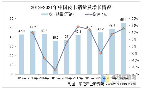 皮卡销量的走线恰恰相反。从2016年开始,皮卡销售连续6年实现增长。2016-2020年,销量分别增长10.8%、18.38%,9%;10.14%、8.6%、12.7%。到2021年,中国皮卡总销量已经从2015年的9万台增长到了55万台。