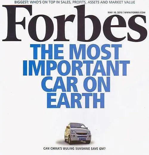 销售奇迹让五菱之光登上了福布斯杂志的封面,福布斯称其是“世界上最重要的一款车”。
