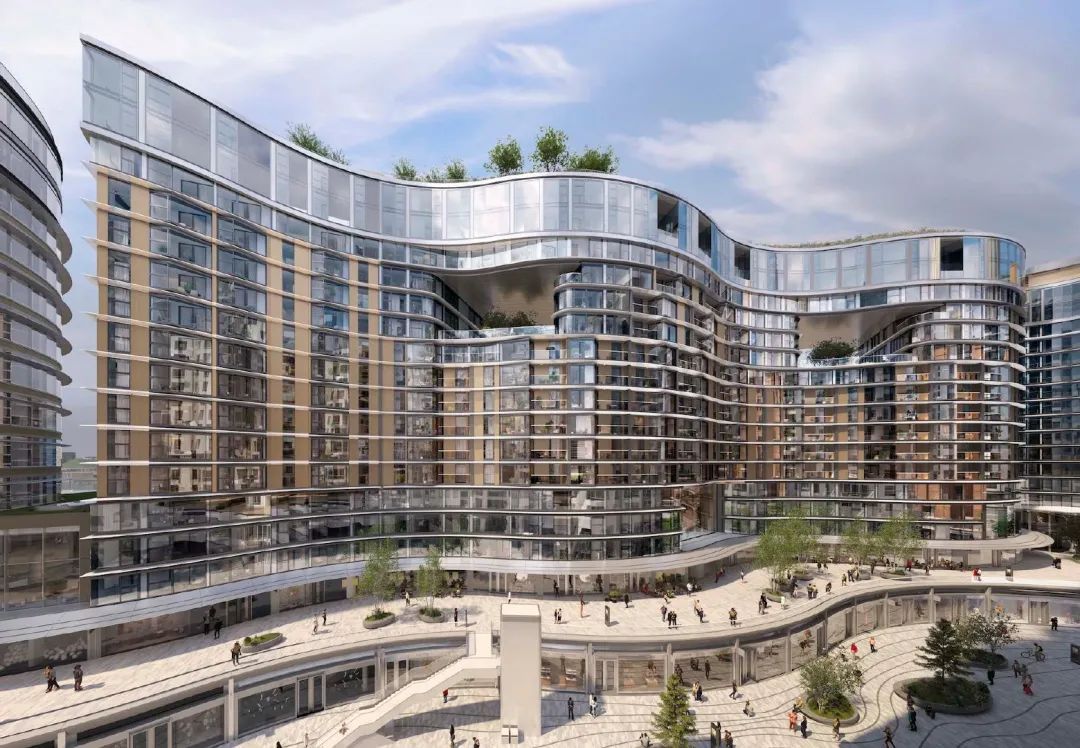 第 1 期名为「Circus West Village」,是商住混合体,由 SimpsonHaugh 和 dRMM 设计,2017 年已完工,不仅有住宅,还有商店、餐厅和咖啡厅。2 期也一样是商住,由建筑事务所 WilkinsonEyre 设计,2022 年 2 月已投入使用。