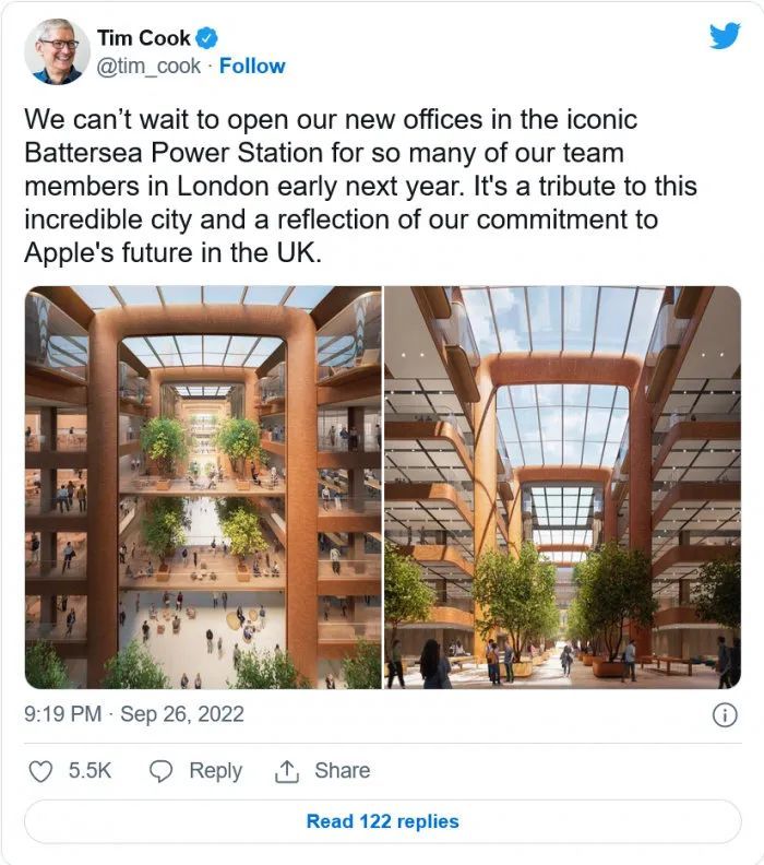 这座改造后的发电站不得了,苹果 CEO 库克近期接受采访时表示,苹果英国总部最快在 2023 年迁入。