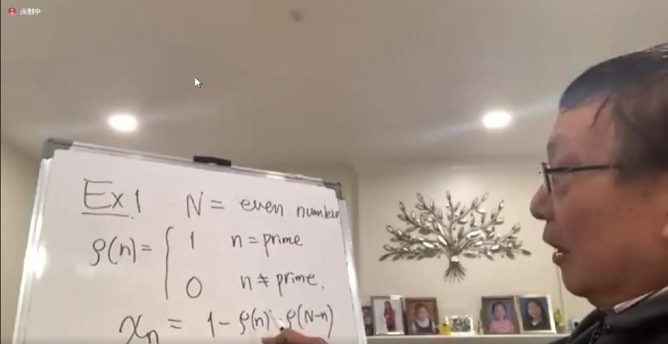 第一个例子,我们就说一个偶数N(一个比较大的偶数),我们用ρ(n)定义这个素数的特征函数,都是定义在正整数上。