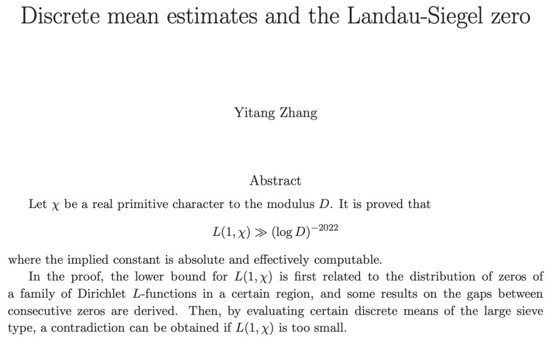 钰子一科普张益唐关于朗道-西格尔零点猜想的文章!「他取得了突破性的进展,结论十分漂亮!」