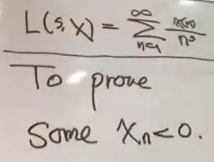 话再说回来,怎么样去证明某一个χn是小于0,我们就给出了一个很简单的数列,哪怕里面有10000个数,我们也可以写出来这里面是不是有一个是负的,这很简单。