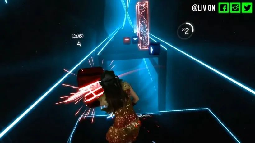 其次,公司一位资深VR玩家吐槽到,你在玩《节奏光剑》时,得注意动作不能太大,不然就有漏光的可能。