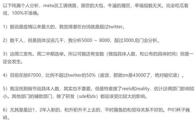 按照该网友的推测,Meta这次要裁5000-8000人。