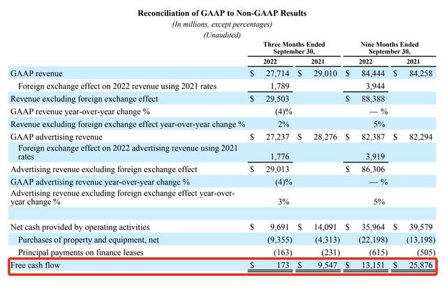 而比股价暴跌更可怕的是,元宇宙业务的巨大的亏损,导致Meta开支急剧上升,公司自由现金流在最近一个季度下降了98%。