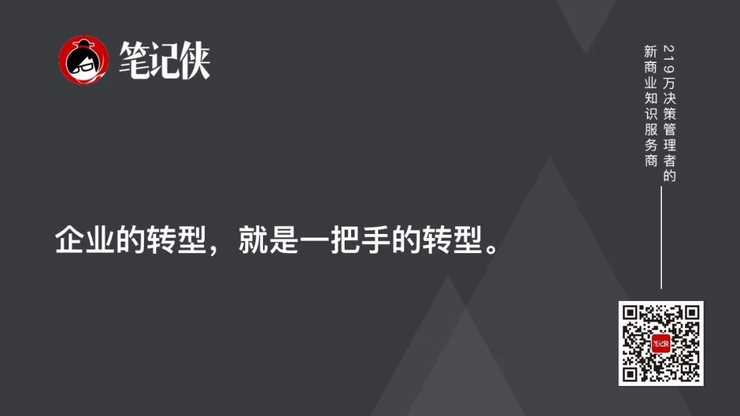 企业的转型,就是一把手的转型。企业家自身不去改变,不去拥抱这样的变化,依靠其他人推动转型是不现实的。