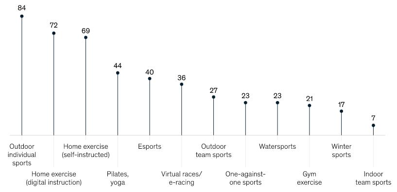 来源:the global sporting goods industry report 2021■2021年单人户外形式增长82%,排在所有运动形式首位