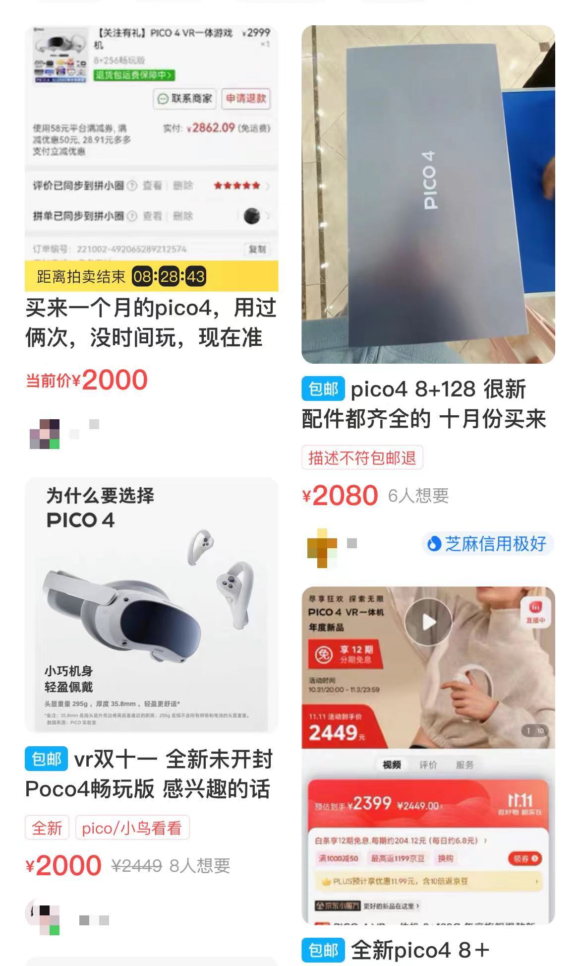 在二手交易平台上折价出售的PICO 4。