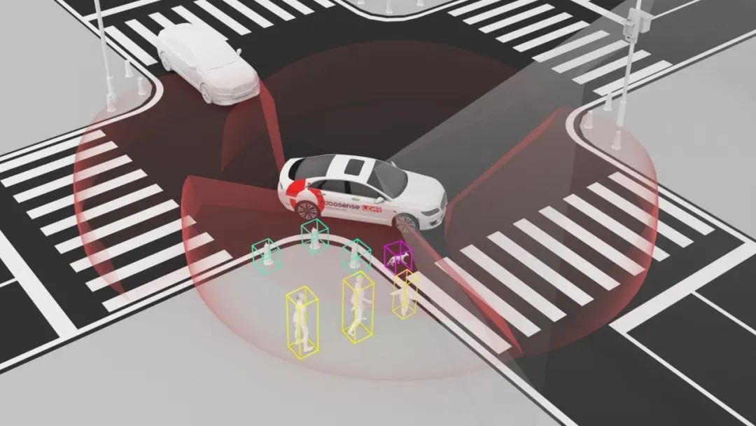 例如,在高速或城区行驶时,因车辆加塞而导致的紧急避让场景时常发生。结合侧向激光雷达,可让车辆前向感知水平视场角扩大至180°及以上,甚至达到车身全方位无死角覆盖。