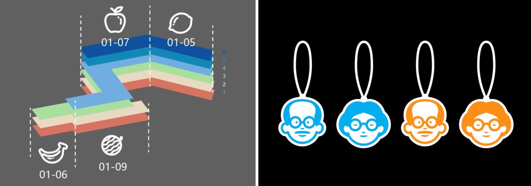 ▲ 以水果来代替传统数字楼层的导视系统和院内亚克力钥匙扣