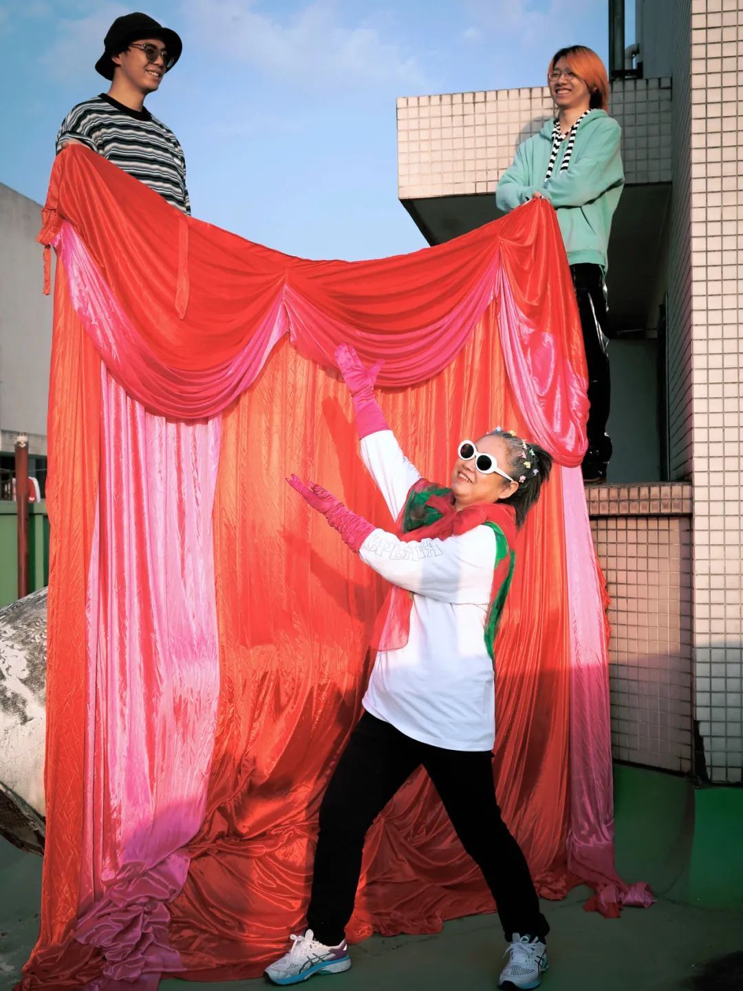 ▲ 00后工作人员换装婆婆的衣服后,在露台上跳舞