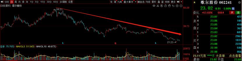 二级市场表现看,歌尔股份收跌3.8%,自2021年12月13日创下历史新高后迄今累计最大跌幅达63%。