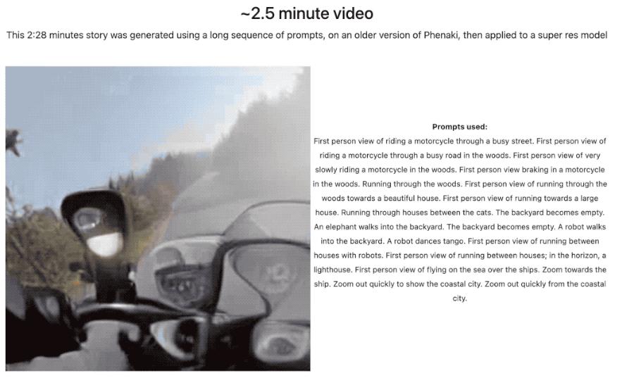 而Phenaki则能根据200个词左右的提示语生成2分钟以上的较低分辨率长镜头,讲述一个相对完整的故事。