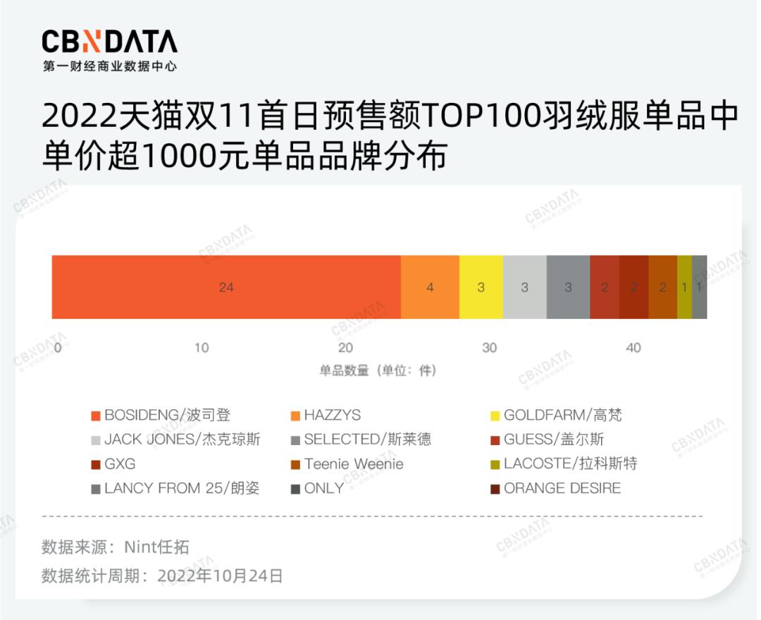 从结果来看,一系列新品的销量表现并不出色——销量最高的防晒衣、风衣羽绒服、小香风羽绒服单品,在旗舰店不过售出1000-2000件;根据Nint任拓数据,今年双11期间品牌在“运动/户外”类目的销售额也不过数百万,甚至不到服饰鞋包类目销售额的零头。但波司登试图摆脱“羽绒服”“冬季”单一标签的努力显而易见。