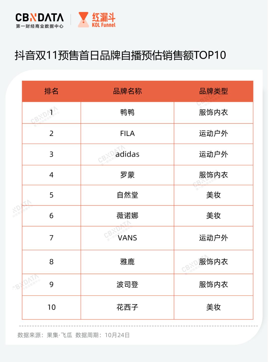 当然,品牌也在采取差异性的销售模式以规避“自己打自己”的矛盾局面。鸭鸭的反季羽绒服销售多采取头部达人分销的模式。在快手平台,鸭鸭与芈姐、真姐、蕊姐等快手头部服装主播达成分销合作,其中,鸭鸭与快手母婴头部主播MIMI童装的合作分销,在今年快手616期间获得订单破1万单、均客单价270+、增量GMV占比96.3%的销售成绩。在抖音,鸭鸭在今年6月也多次与交个朋友直播间、彩虹夫妇、主持人王芳等达人合作,其中6月28日与主持人王芳合作的“鸭鸭羽绒服反季一折起”专场直播中,单场直播合作销售额达到410.9万元。但在羽绒服销售旺季的双11期间,鸭鸭则更多回归品牌自播。在今年抖音双11预售首日,鸭鸭是抖音品牌自播预估销售额排名第一的品牌。