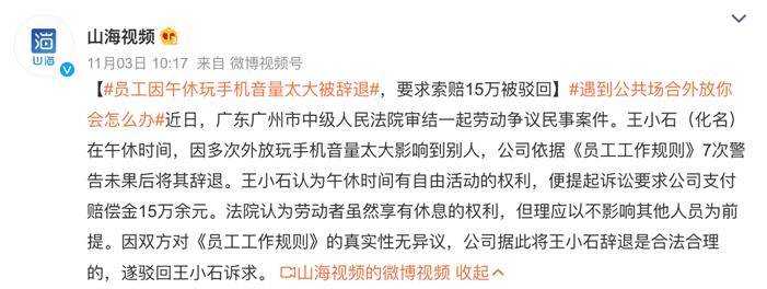 最近,关于“员工午休玩手机音量很大”的新闻上了热搜。