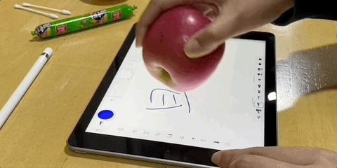 热爱原装正版的同事不乐意了:你这火腿肠怎么能比过苹果Pencil?于是立刻拿出了一个真·苹果,我们拥有了货真价实的Apple Pencil。