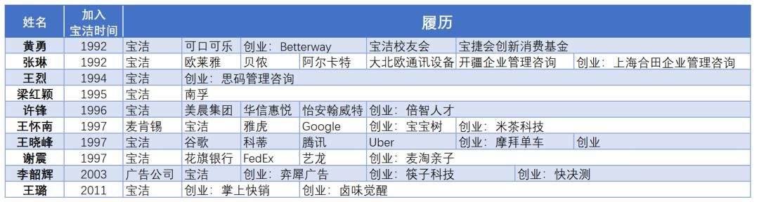本刊梳理了接受访谈的宝洁校友们的职业生涯轨迹,一名优秀的职场人往往愿意尝试和拥抱不同的公司与文化,而非始终待在同一个舒适圈内。