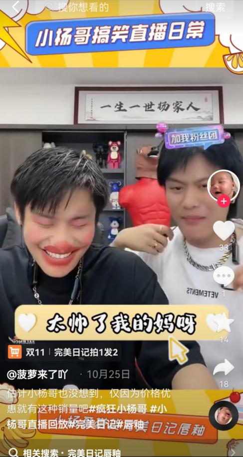 “翻车”放在任何主播身上恐怕都是需要道歉的突然事故,但小杨哥的直播间里时刻都在上演翻车场景,反向带货也是小杨哥在直播电商领域最出圈的特点,剧情短视频的搞笑风格无缝衔接地延续到了直播间。