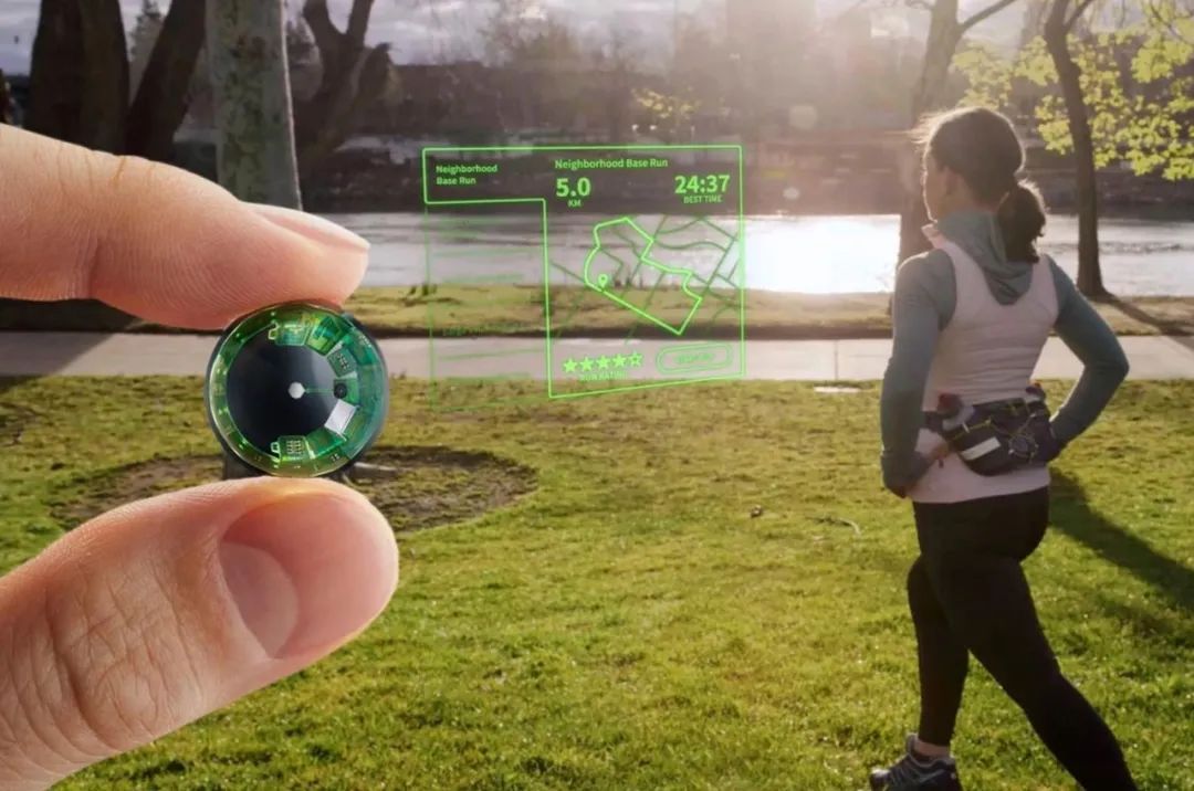 比如说Mojo Vision AR智能隐形眼镜,在一片隐形眼镜之中有着电路板、电池、处理器、通讯模块等元器件,在骑车、跑步等运动场景会弹出时速、配速和路径规划等信息。