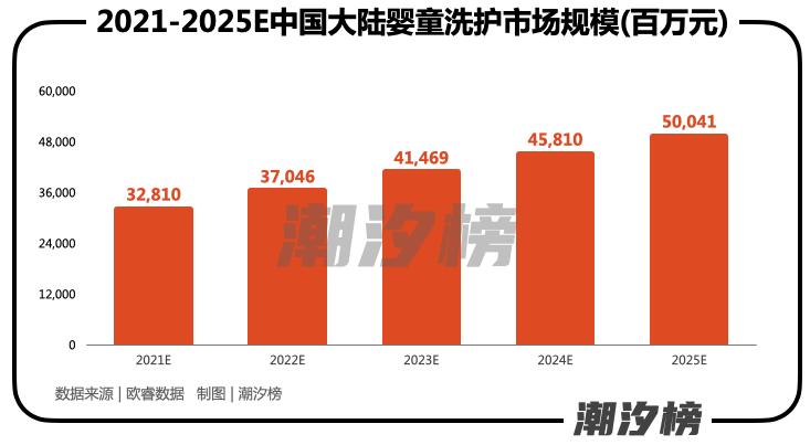 欧睿数据显示,2021年我国婴童洗护品市场规模超过320亿元,预计到2025年将有望达到500.41亿元,复合年均增长率约11.1%。