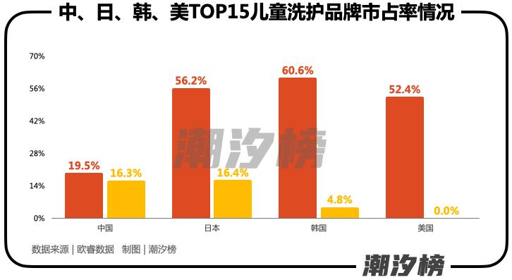 尽管数据表现一般,但顺着上图的轨迹,我们或许能洞见到:经济越是发达,儿童洗护市场越是由本土品牌做主,以致外资品牌进入时要面临很高的“壁垒”。