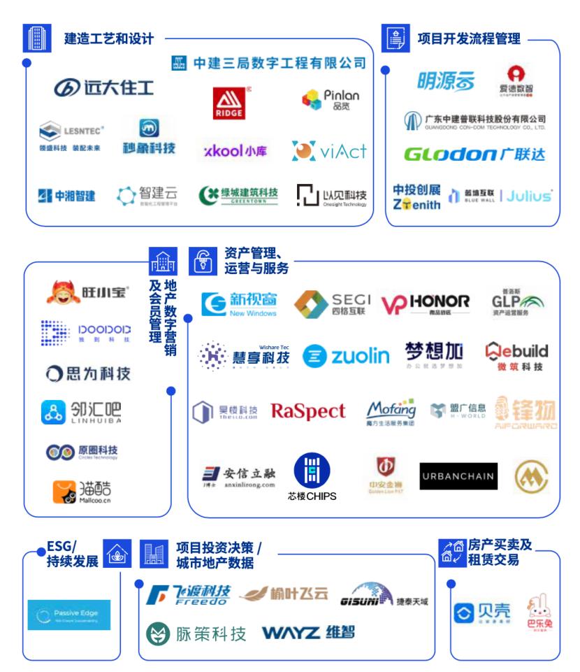 入选企业中涵盖了建筑设计、建造工程管理、建筑工艺、数字营销、数字化运营、空间运营、线上经纪平台、物业服务、城市运营管理等不同环节领域,涉及住宅公寓、商业地产、办公楼、产业园区、物流园区、酒店等各个业态。