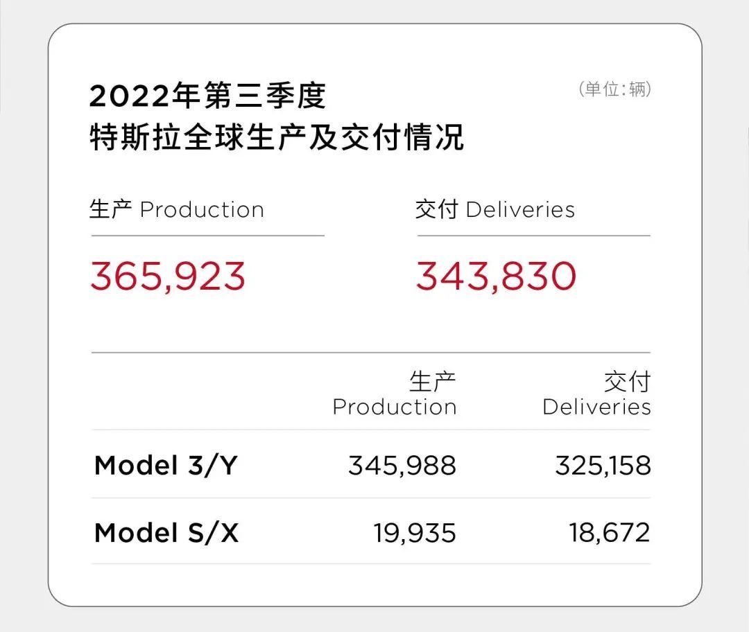 特斯拉 2022 年 Q3 的交付量为 34.3 万辆创新高,但低于华尔街预期的 35.8 万辆,公布数据后股价跌 8.61%。而特斯拉 Q3 财报显示营收 214.5 亿美元,同样低于市场预期 221 亿美元,随后股价跌 3%。