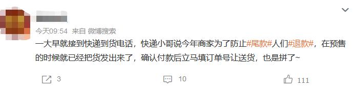 付完尾款秒发货,让人来不及退款,使不少人都措手不及。