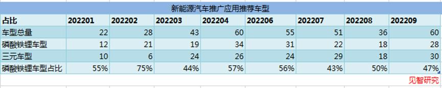 而全年推广新能源乘用车的磷酸铁锂电池配备比例在52%以上,相较此前两年2020年和2021年新能源汽车推广应用推荐车型目录中的15%和42%左右的磷酸铁锂电池配备水平,今年将磷酸铁锂电池的配备比例有望反超三元锂电池,并在明年继续保持。
