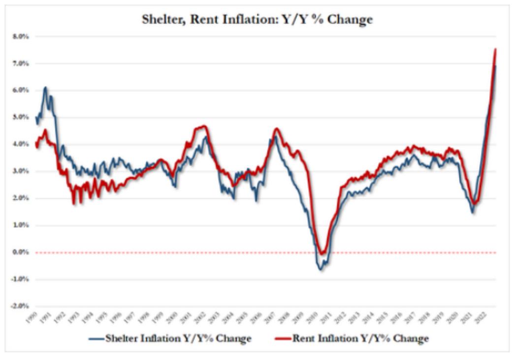 1.占CPI约三分之一的住房成本10月上涨0.8%,为1990年以来最大单月涨幅,租金指数环比上 0.7%,业主等效租金指数(OER)上涨 0.6%。