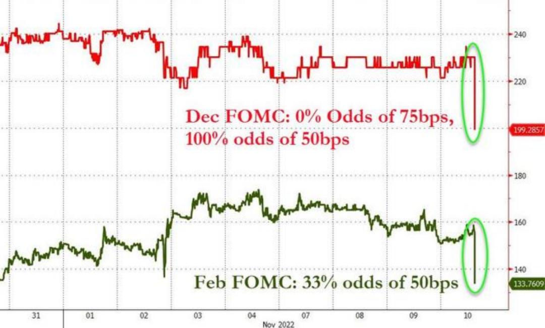 CPI公布后,媒体统计发现,市场全面消化12月美联储加息50个基点的预期,继续加息75基点的几率降至零。