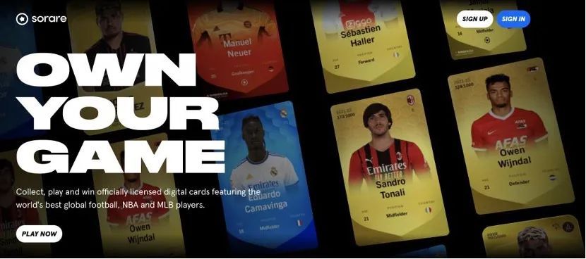 和传统的梦幻游戏不同,Sorare更接近于结合了帕尼尼球星卡、范特西和NFT模式,并且搭建在以太坊区块链上的NFT卡牌游戏平台,将现实俱乐部或球队的运动员以球星卡的形式展示。