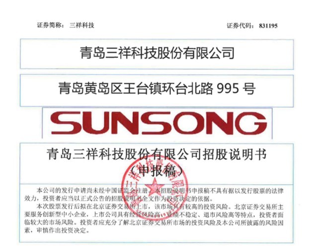 “专精特新”小巨人三祥科技将于11月17日在北交所上会
