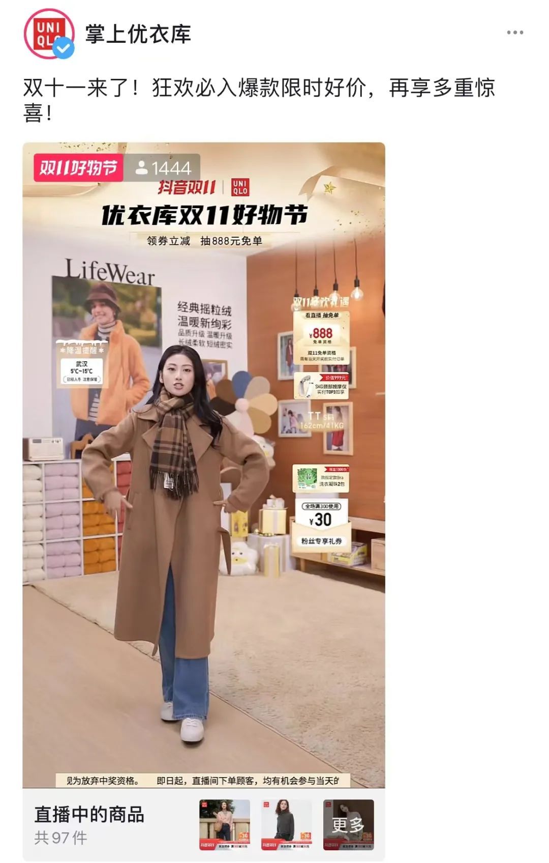 在淘宝为了打通直播“平台壁垒”征战时,另一边,优衣库在抖音的开播,同样被视为今年业内最重要的事件之一。