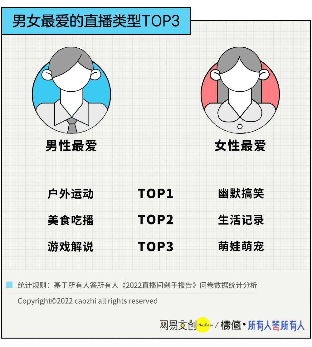 意料之外的, 如果从性别层面看: 男女生爱看的直播类型,差别非常大。