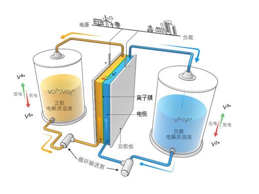 据《锦缎》介绍,这种新型电池全称为全钒氧化还原液流电池,正、负极都是钒,通过氧化还原反应实现充放电。