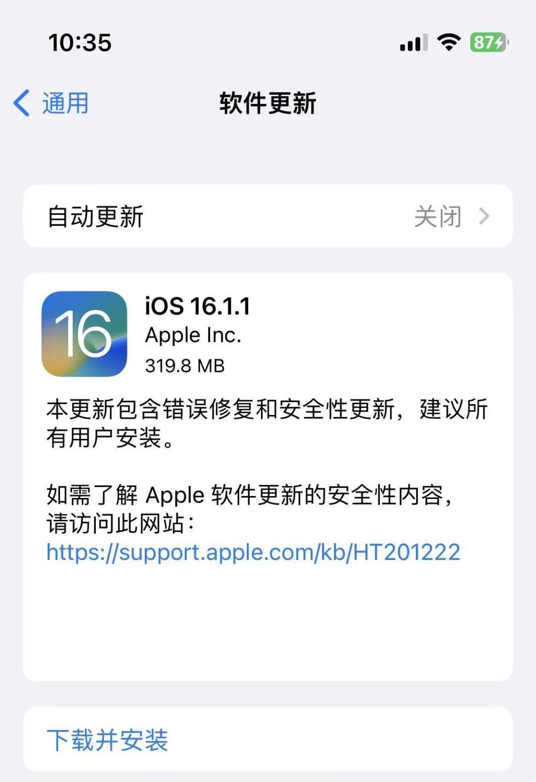 终于,我们迎来了iOS 16.1.1更新,与往常一样,苹果并没有明说新系统的具体改变有什么,仅仅是告诉我们新系统包含错误修复和安全性更新,建议所有用户升级。