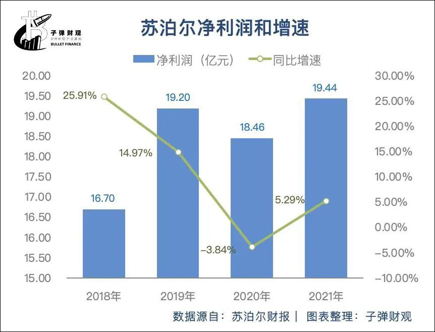 事实上,增长率整体放缓的不止苏泊尔的营收,也包括其净利润。苏泊尔财报数据显示,在过去4年里,该公司的净利润增速从2018年的25.91%大幅降低至2021年的5.29%。