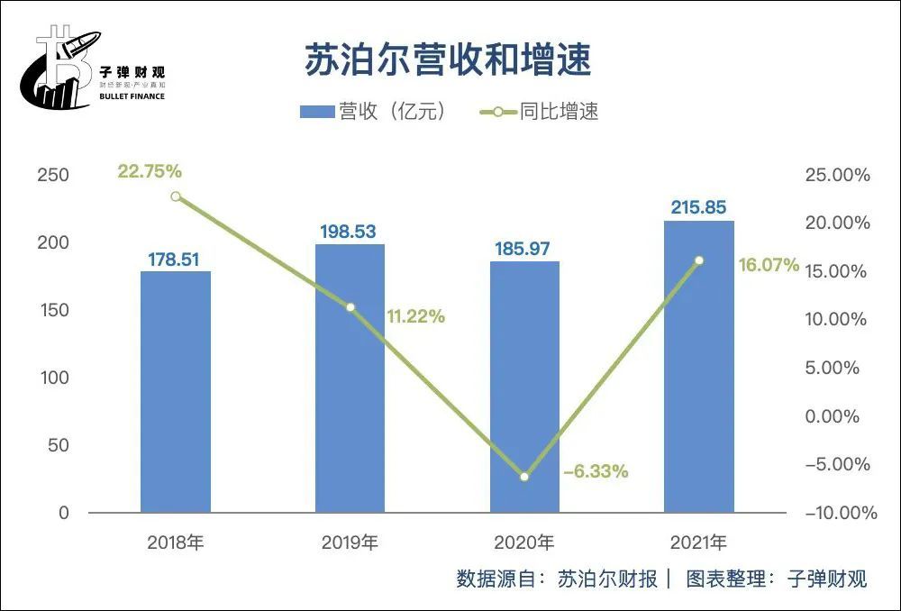 就拿营收来说,根据已公开的财报,最近4个年度,苏泊尔的营收增速已由2018年的22.75%降至2021年的16.07%,呈现出总体放缓的态势。