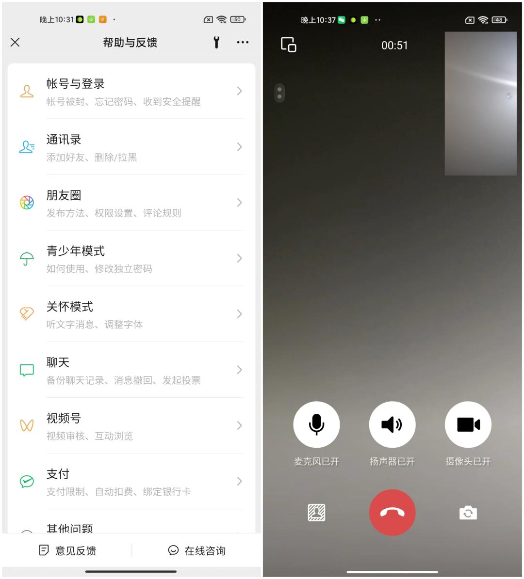 【帮助与反馈】页面样式升级为了卡片式,视频、语音通话页面也进行了优化处理。