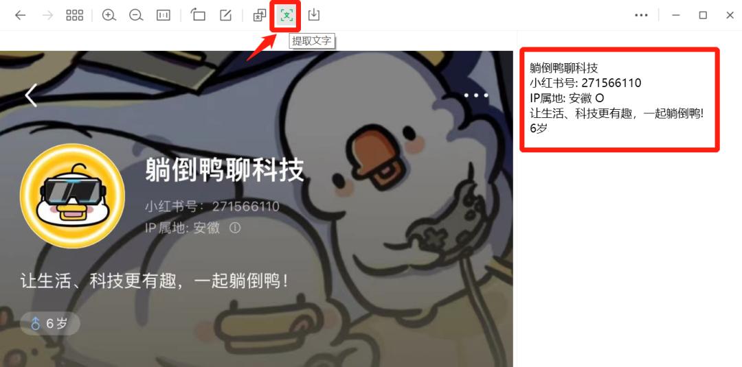 点击顶部【文】按钮,可以一键提取图片上的所有文字。