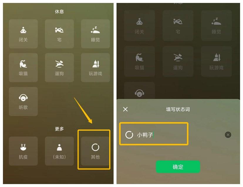 包括使用自定义表情,在设置状态时拉到最底下,选择【其它】,就可以自定义了。