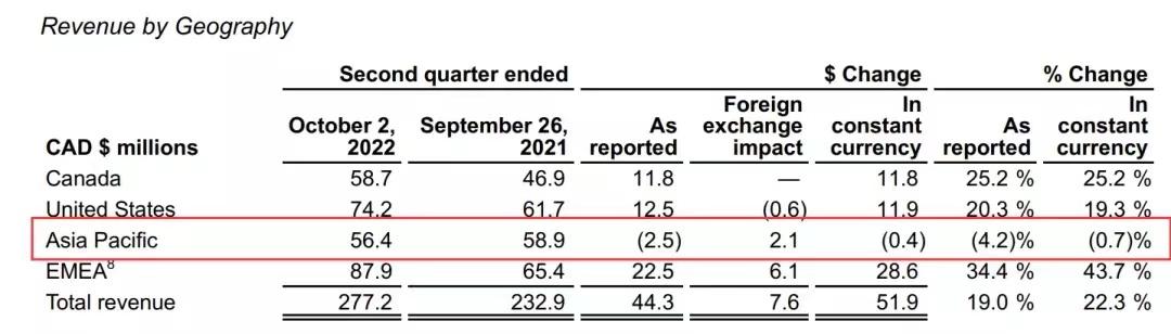 分地区看,加拿大鹅在加拿大本地、美国、欧洲、中东和非洲市场的营收均保持了两位数以上增长;中国所在的亚太地区有所下降,第二季度营收5640万加元,同比下降4.2%。