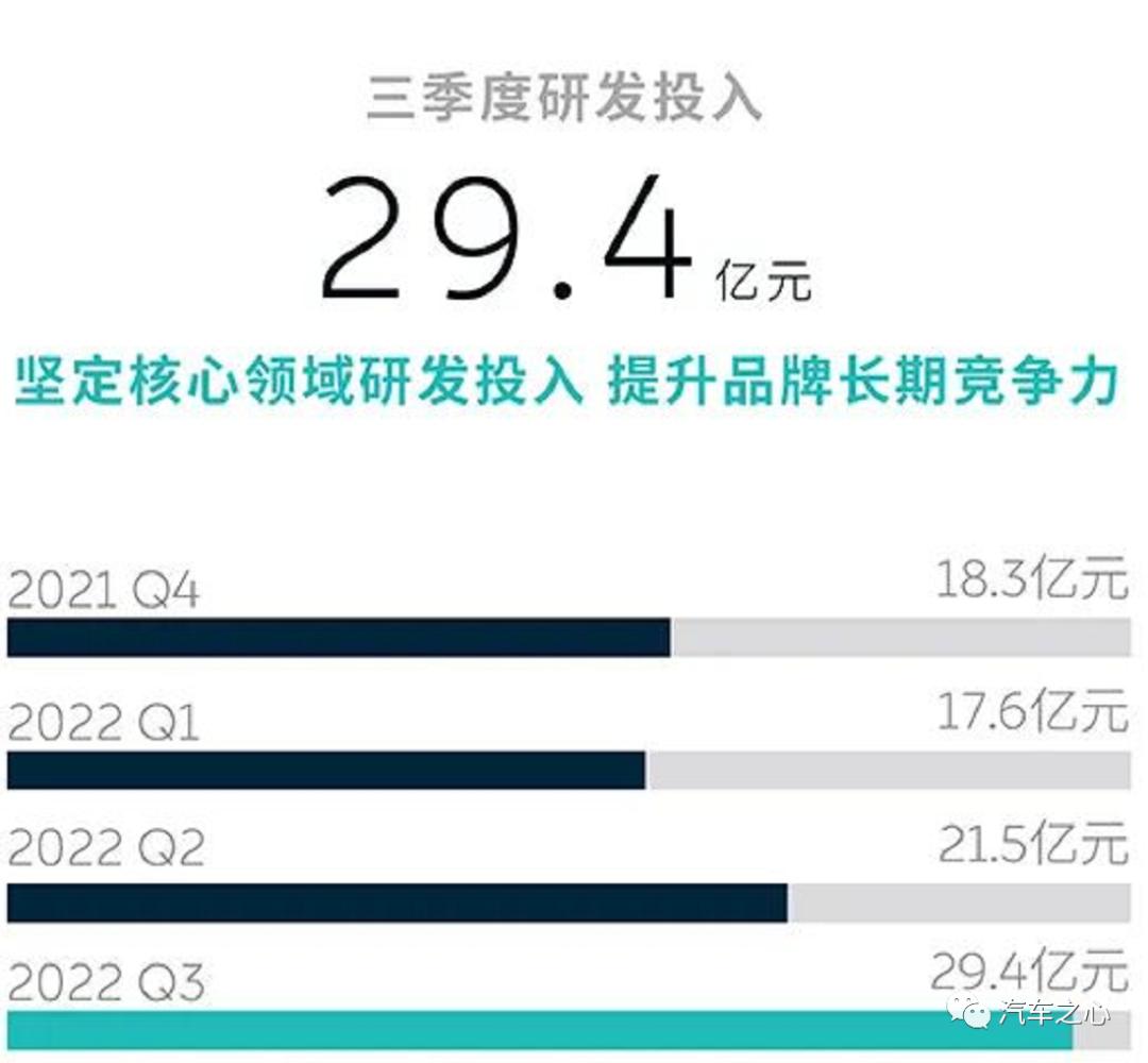 财报显示,蔚来第三季度研发费用为 29.45 亿元,同比增长 146.8%。这个研发投入大概率再次领跑一众造车新势力。