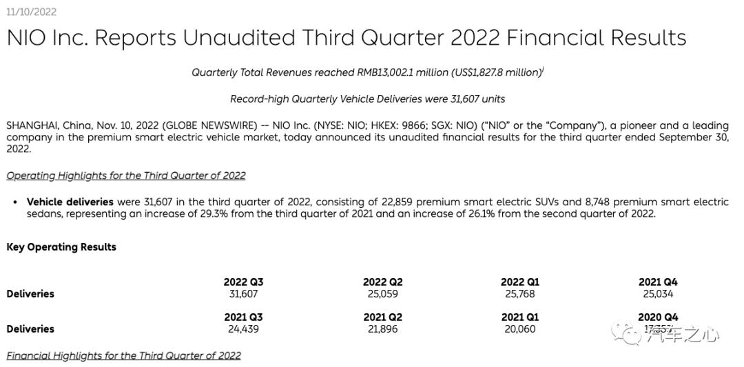 从财报披露的数据来看,蔚来第三季度的成绩好坏参半: